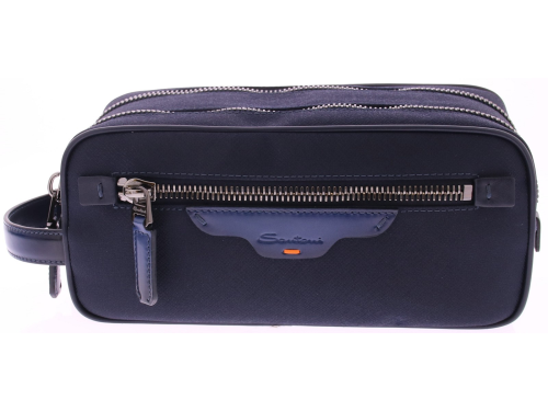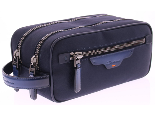 Santoni Toilettas – Blauw Canvas & Leer | Matcht met Weekendtas & St. Moritz 18190 Deze elegante toilettas van Santoni is een stijlvolle en praktische reispartner voor de moderne man. Vervaardigd uit luxe blauw technisch canvas in combinatie met gladleren details, vormt deze toilettas een perfecte set met de bijpassende weekendtas en de populaire St. Moritz 18190 boots.