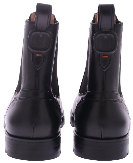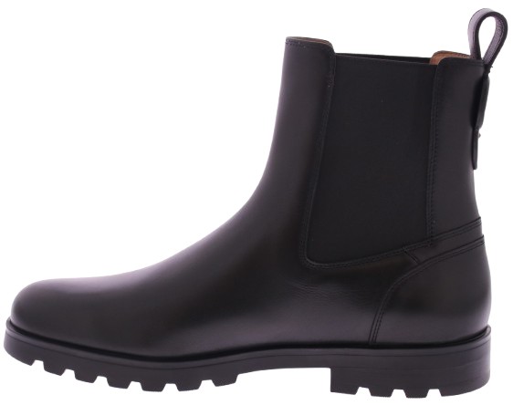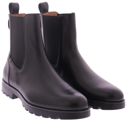 Zwart leren dames korte laars van Santoni. Het mooie zwarte leer heeft een natuurlijke glans en voelt soepel aan, wat elke stap een gevoel van luxe geeft. Dankzij het elastiek aan de zijkanten sluit de schoen mooi aan om de enkel en trek je hem moeiteloos aan met de handige treklus aan de achterkant. De dikke rubberen zool van twee centimeter geeft de boot een stevige, stoere uitstraling, terwijl hij tegelijkertijd zorgt voor comfort en grip bij dagelijks gebruik. Deze Chelsea boot past perfect bij een jeans voor een casual look, maar komt ook tot zijn recht onder een nettere outfit. Tijdloos, stijlvol en met oog voor detail – Italiaans vakmanschap!!