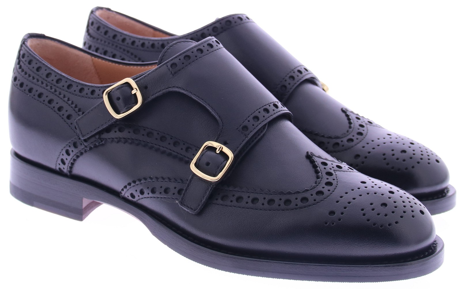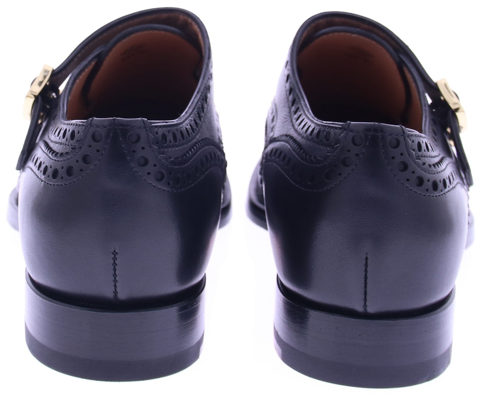 Zwart leren dubbele gespschoen voor dames van Santoni. Deze dubbele gespschoen van Santoni straalt Italiaanse elegantie uit. Gemaakt van verfijnd kalfsleer met brogue-details op de neus. De leren zool met rubberen inzet biedt comfort en grip, terwijl de dubbele gesp zorgt voor een stijlvolle, vrouwelijke uitstraling. Een tijdloze keuze voor zowel zakelijk als casual gebruik.