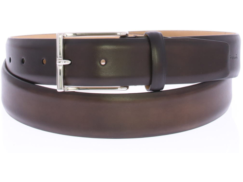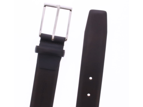 Donkerbruine leren heren riem van Santoni. De riem is in te korten aan de gesp kant en heeft een leren voering.