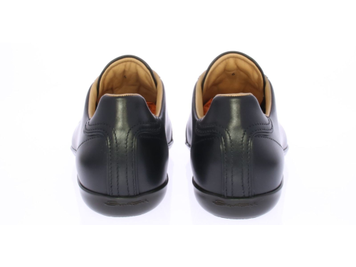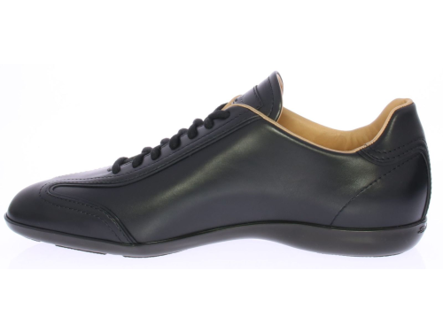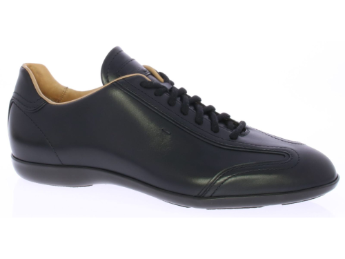 Zwart leren heren sneaker van Santoni. De schoen is uitgevoerd in zwart kalfsleer op zwarte rubber zool. De schoen is kalfsleer gevoerd. De binnenzool is uitneembaar.