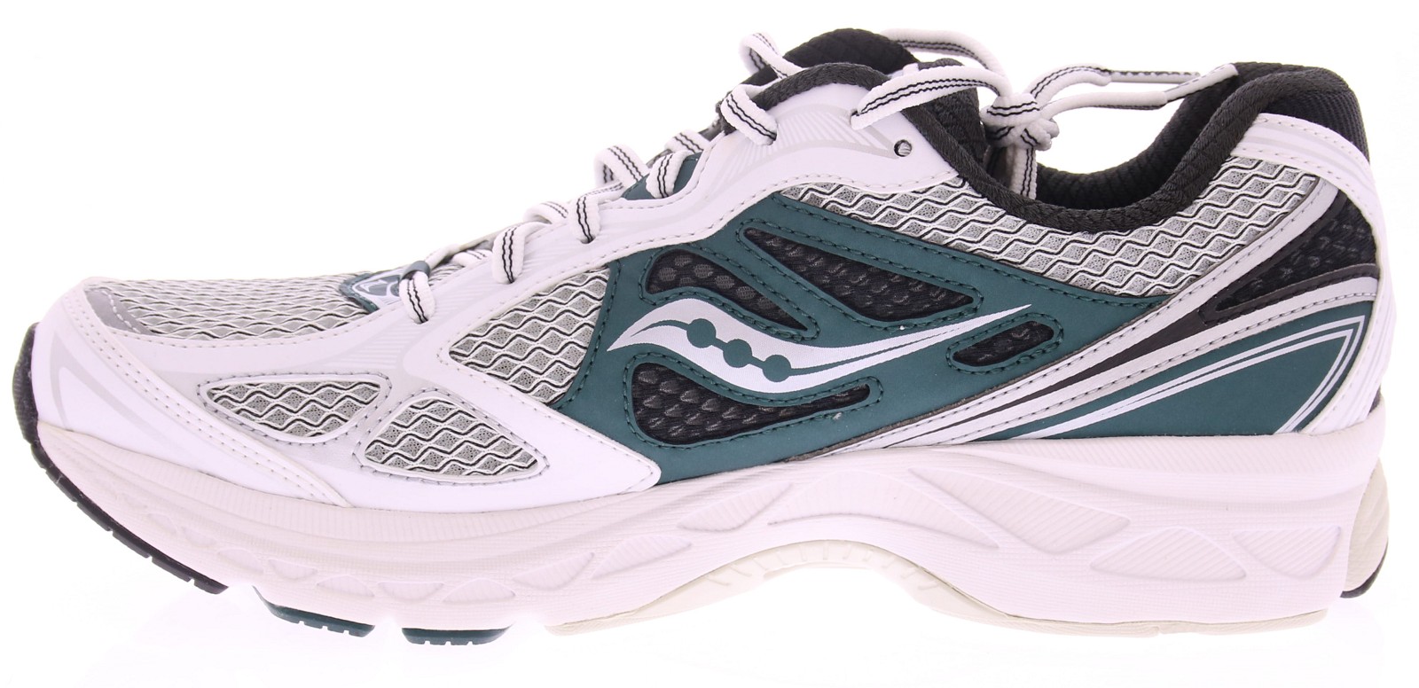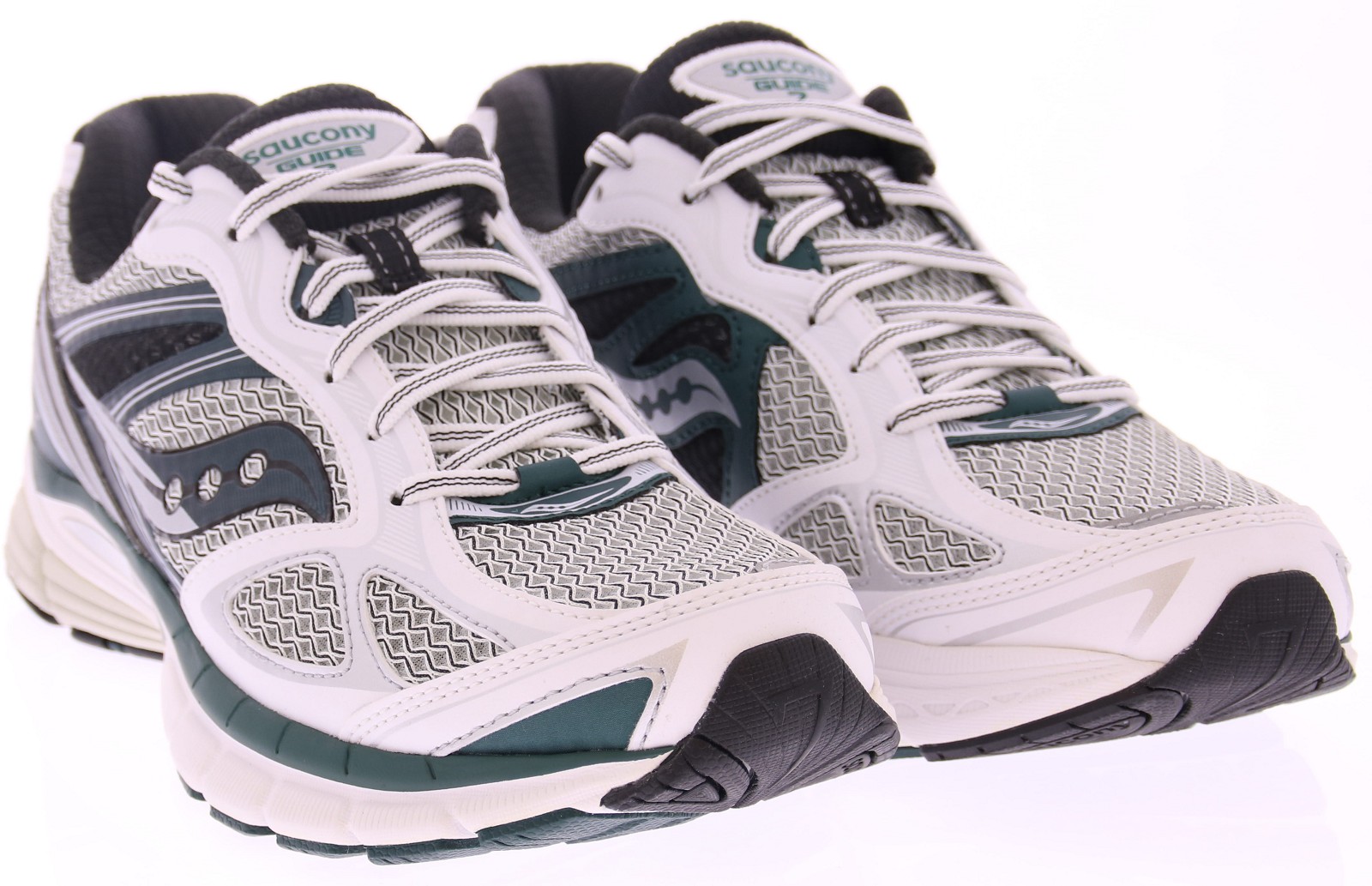 Saucony ProGrid Guide 7 - White/Pine Sportieve klasse met een frisse groene twist De Saucony ProGrid Guide 7 in White/Pine is de perfecte retro-runner voor wie houdt van subtiele contrasten en sportieve stijl. Met zijn witte basis, grafietgrijze accenten en een diepe groentint (pine), combineert deze sneaker moeiteloos vintage performance met een moderne streetwear-uitstraling.