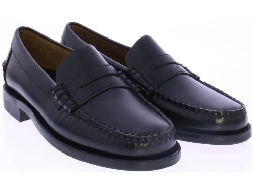 Heren instapper van Sebago in zwart leer. de schoen is ongevoerd en heeft een leren zool.