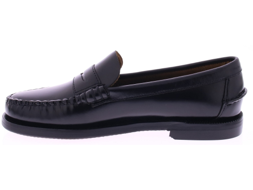 Zwart leren dames instapper van Sebago. Deze instapper uit de serie Classic Dan van het merk Sebago is tijdloos, klassiek en trendy. Een Sebago Original. De schoen is vervaardigd op een mocassin maakwijze uit één stuk leer met een enkele doorlopende naad op het bovenwerk dat met de hand is gestikt. De voering is van leer. Na een korte inlooptijd zit hij als gegoten en geniet u van een fijn loopcomfort. De trend van nu leuk onder een wide-leg of rokje!!
