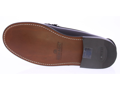Heren instapper van Sebago artikel Classic Dan. De schoen is van bordeaux leer gemaakt en is ongevoerd. De zool is van leer.
