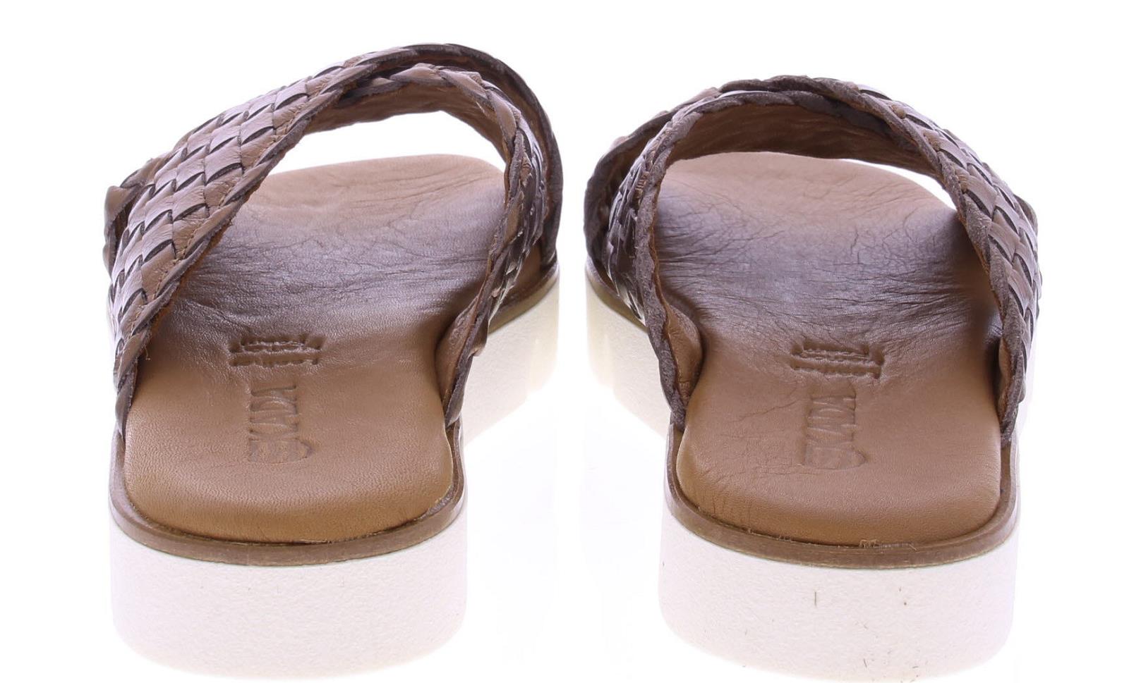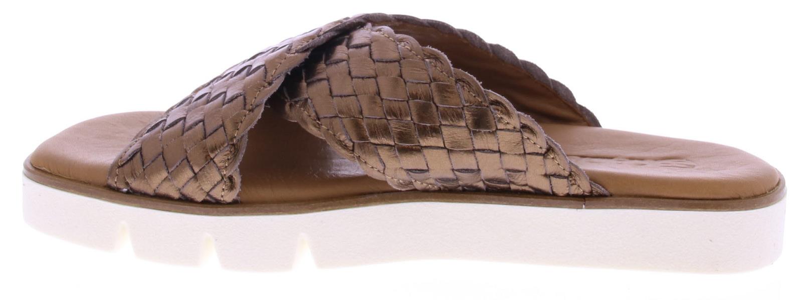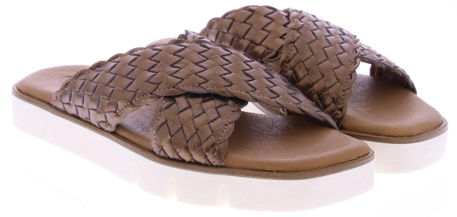Sekada koper kleurige platte dames slipper van gevlochten leer, een zacht leren zool met traagschuim en een kunststof loopzool, wat resulteert in een ongelooflijk comfortabele ervaring.