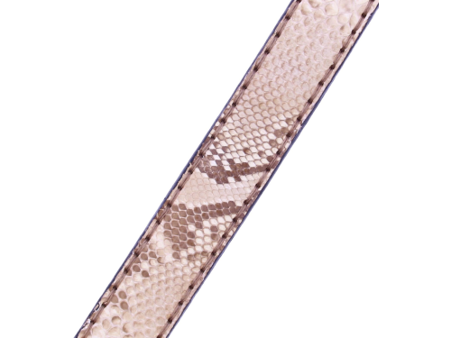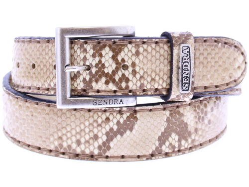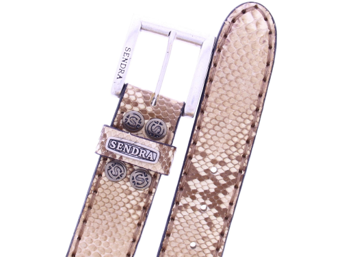 Heren riem van Sendra uitgevoerd in room naturel piton leer. de riem is opgebouwd uit stukjes piton huid in de breedte en daardoor een andere prijs dan de riemen uit de middelste buik schub. De riem is geheel leer gevoerd valt als de andere sendra riemen 5 cm kleiner dan uw normale riem maat. De meeste mensen bestellen de riem dus 5 cm groter dan hun riem maat. De riem heeft een sier sticksel rondom de rand ter versteking en voor een casual uitstraling.