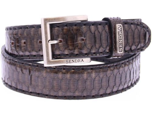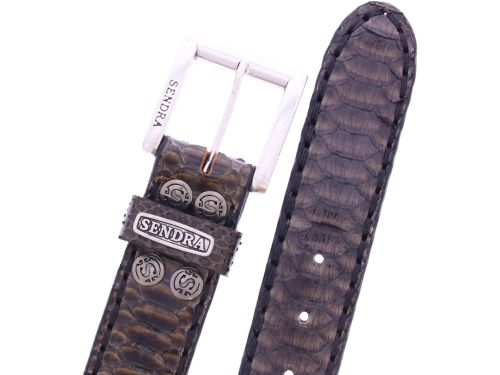 Heren riem van Sendra uitgevoerd in taupe piton leer. De riem is gemaakt geheel uit de middelste buikschub van de piton. De riem is gemaakt in verschillende lengte maten en valt 5cm kleiner uit omdat de fabrikant de gesp niet meerekend in de lengte. (deze is immers te vervangen via drukkers voor een ander soort gesp). bij bestellen doen de meeste mensen dus 5 cm groter bestellen dan uw normale riem maat. Verder is de riem met de hand afgewerkt met een grof sticksel en heeft deze een leren voering.