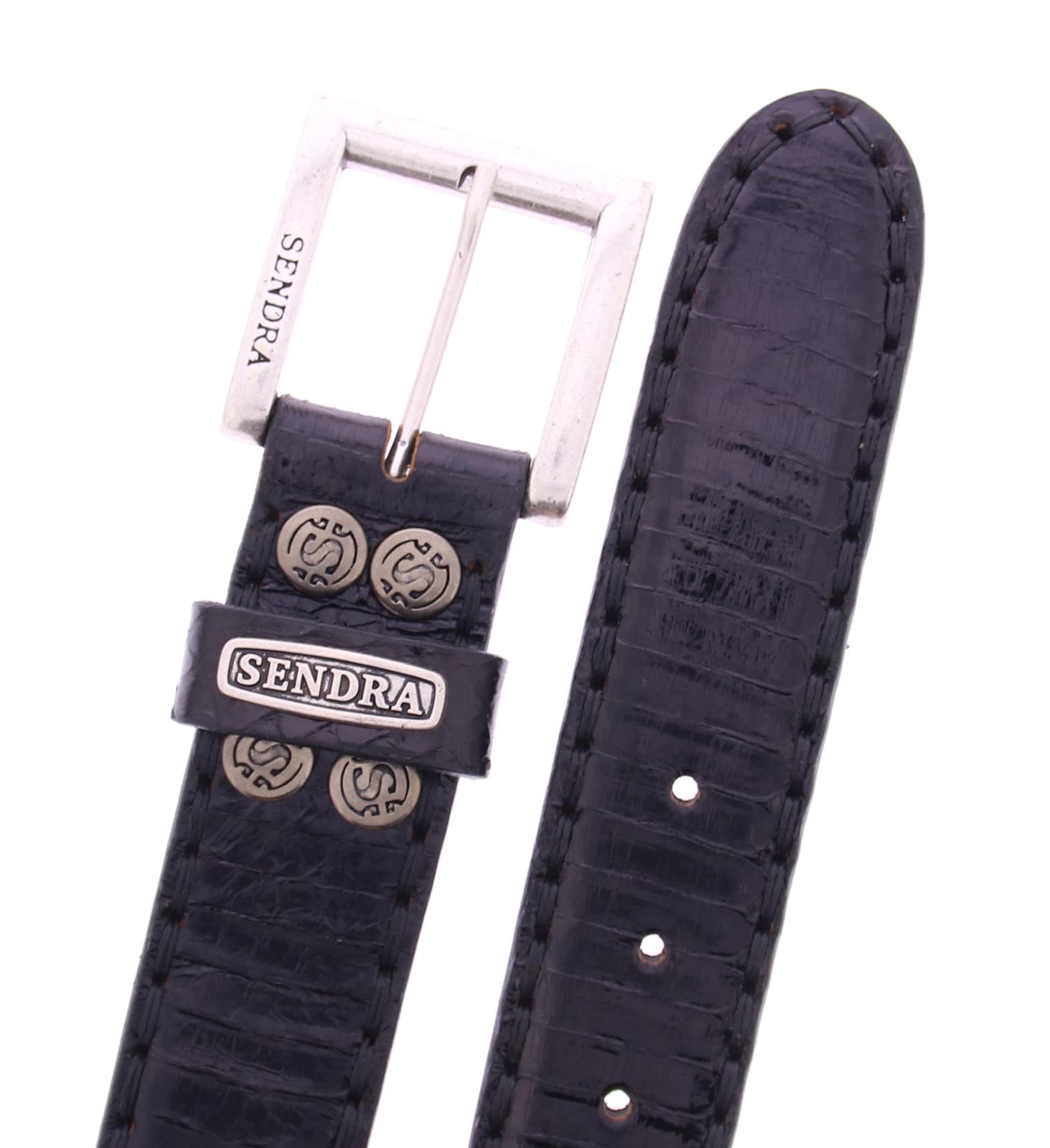 Heren riem van Sendra uitgevoerd in zwart cobra leer. De riem is gemaakt geheel uit de middelste buikschub van de cobra. De riem is gemaakt in verschillende lengte maten en valt 5cm kleiner uit omdat de fabrikant de gesp niet meerekend in de lengte. (deze is immers te vervangen via drukkers voor een ander soort gesp). bij bestellen doen de meeste mensen dus 5 cm groter bestellen dan uw normale riem maat. Verder is de riem met de hand afgewerkt met een grof sticksel en heeft deze een leren voering.