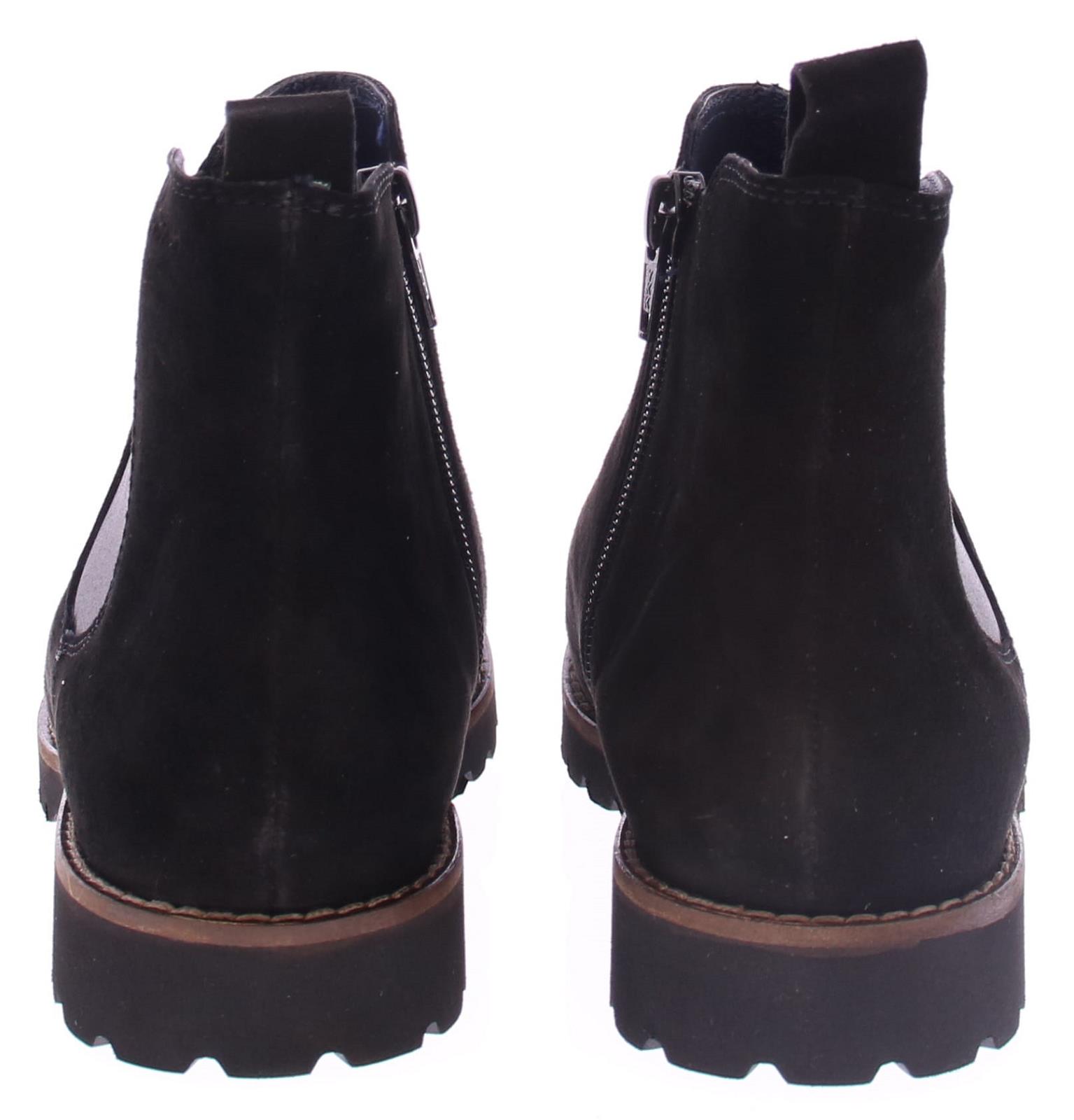 Zwart suede dames Chelsea boot van Sioux. Deze sportieve dames Chelseaboot met rits voor een makkelijke instap is in zwart suede en heeft een lichtgewicht rubberen zool met een doorgestikte zool rand in bruin leer en een brede H leest. De schoen heeft een uitneembaar voetbed en de voering is van leer.