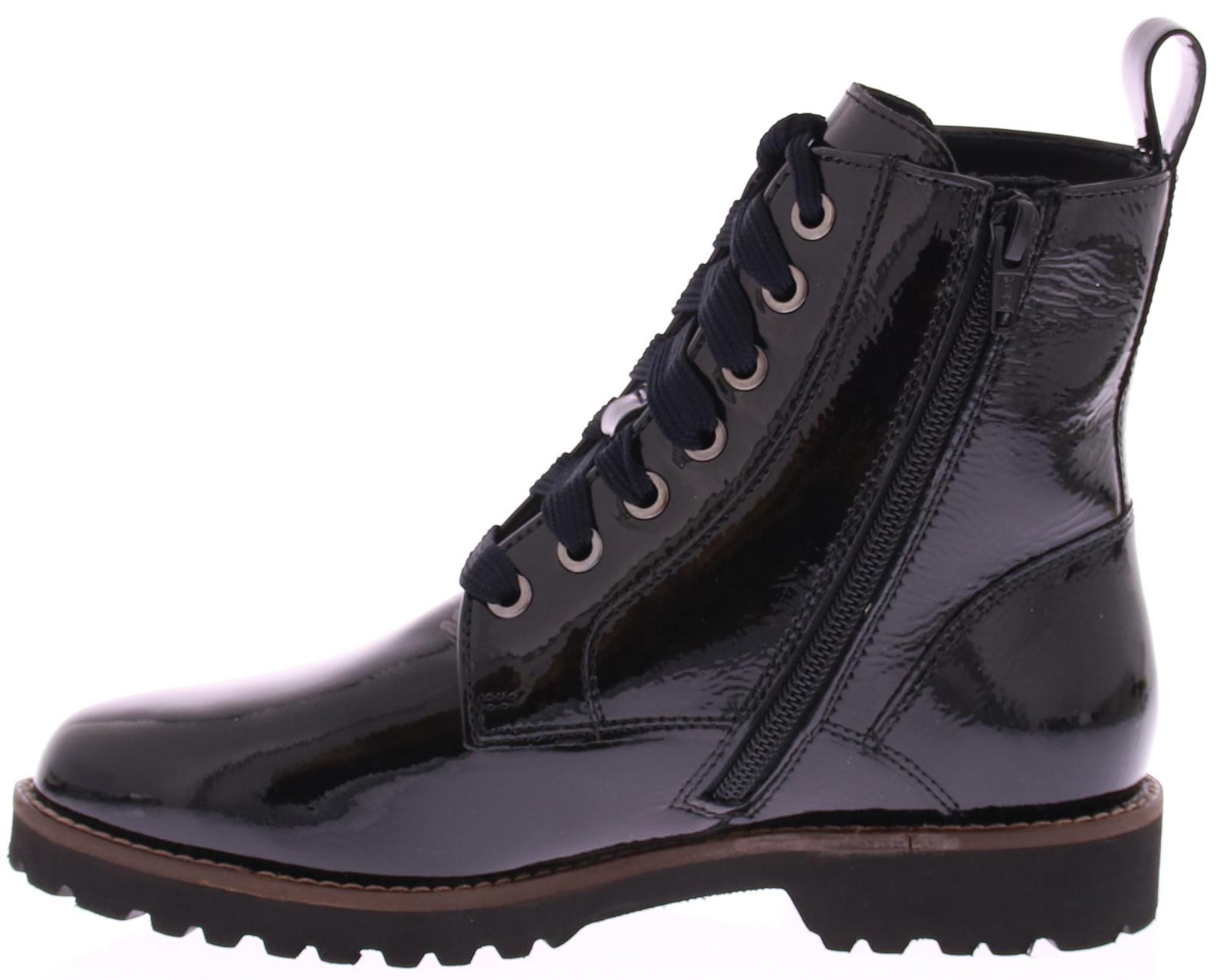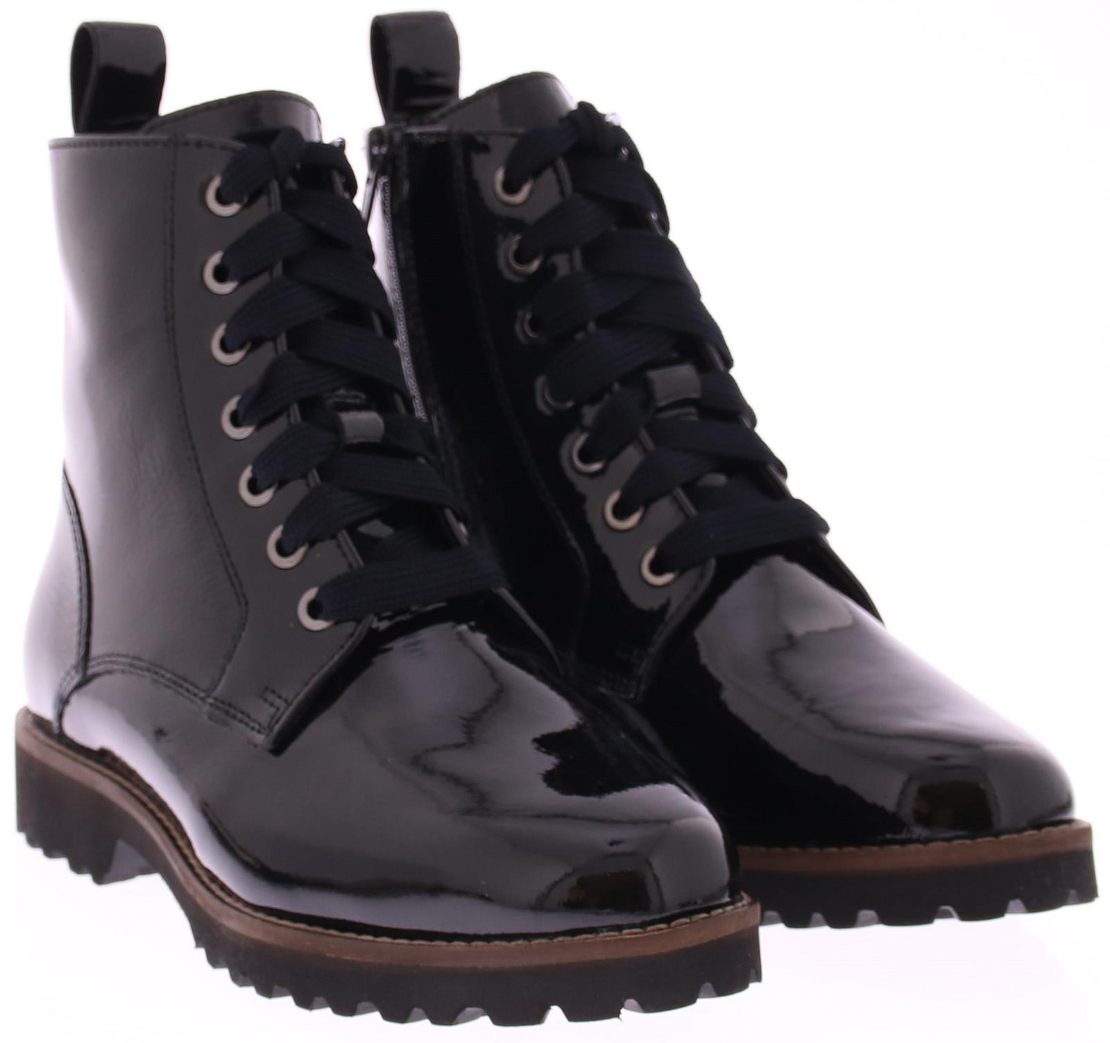 Zwart lak leren dames boots van Sioux. Dit model is uitgevoerd in zwart lak leer en voorzien van subtiele details zo heeft de boot zilveren veterringetjes en een doorgestikte rand om de zool van bruin leer. De voering is gemaakt van een warme katoen met een uitneembaar voetbed. Door de ritssluiting aan de zijkant trek je de schoen snel en eenvoudig aan. De rubberen loopzool heeft een gripvast profiel. Draag dit item onder een toffe jurk of rok.