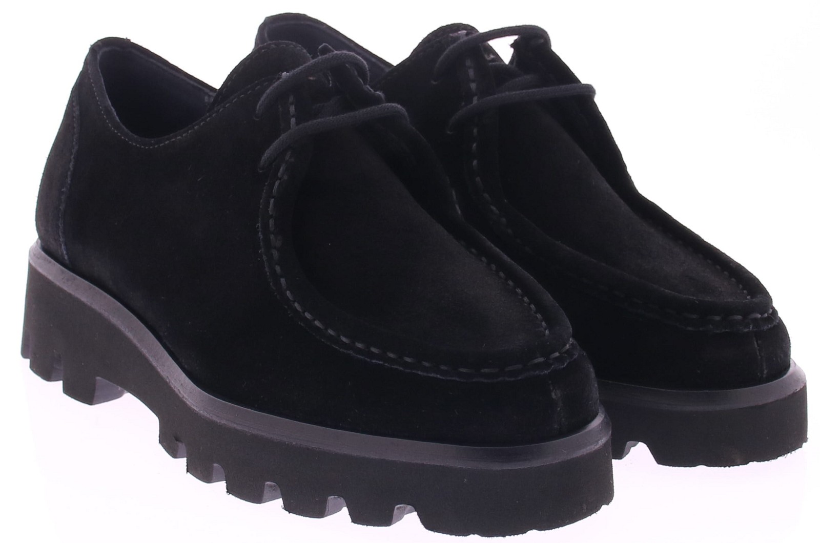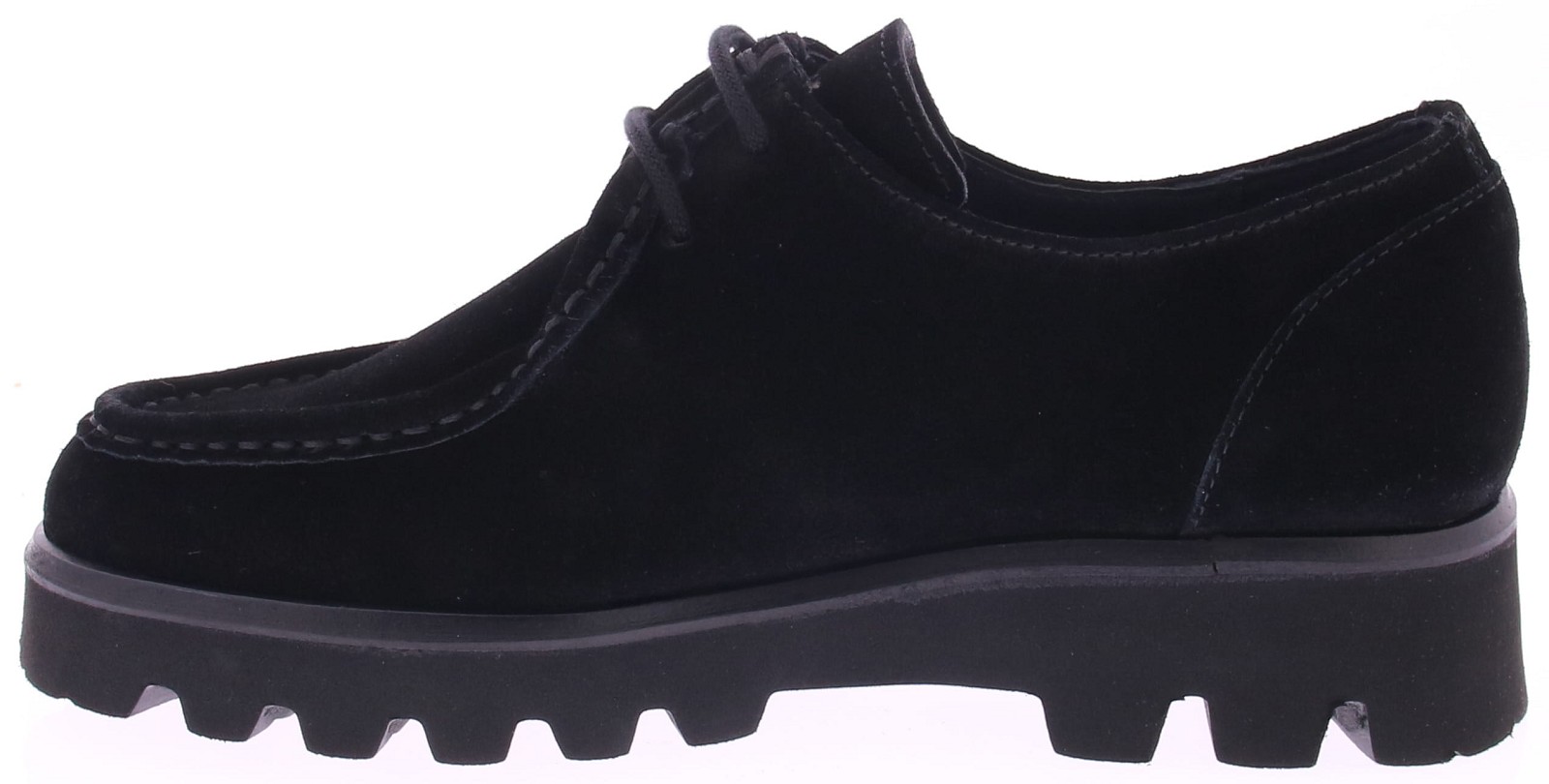 Zwart suéde dames veterschoen van Sioux. Deze Meredira heeft een veterssluiting, een comfortabele H-wijdte, en een supersoft voetbed. Het voetbed is uitneembaar en de lichtgewicht zool is van rubber.
