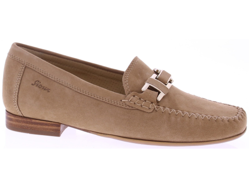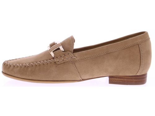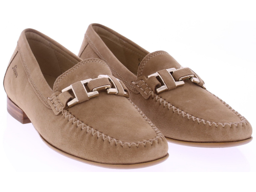 Beige suède dames instapper van Sioux model Cambria. Deze loafer is uitgevoerd in zacht suède en heeft een subtiele hak van 2 cm. De zilverkleurige bit op de wreef geeft de schoen een klassieke uitstraling, terwijl de mocassin-stikselrand het ambachtelijke karakter benadrukt. Het voetbed is uitneembaar, ideaal voor uw eigen persoonlijke inlegzool. De soepele rubberzool zorgt voor grip en dagelijks draagcomfort. Kijk ook eens naar de andere dames instappers van Sioux bij Klijsen.