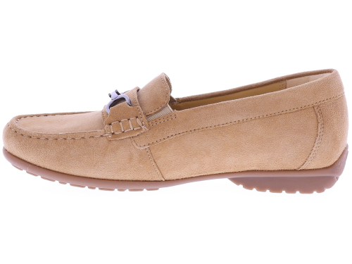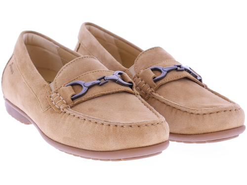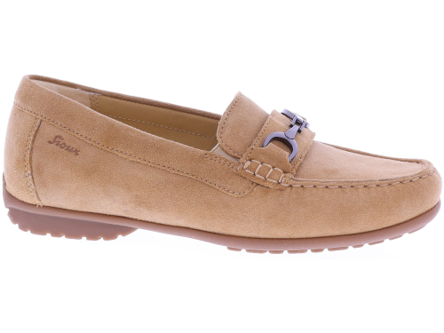 Camel kleurig suède dames instapper van Sioux model Cortizia. Deze mocassin is uitgevoerd in zacht suède en heeft een comfortabele H-breedte. De subtiele bit in donker metaal geeft de schoen een moderne, verfijnde uitstraling. Het uitneembare voetbed is perfect geschikt voor uw eigen persoonlijke inlegzool, terwijl de soepele rubberzool zorgt voor dagelijks draagcomfort. Kijk ook eens naar de andere dames instappers van Sioux bij Klijsen.