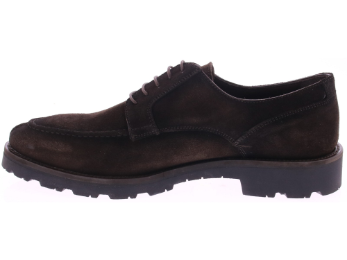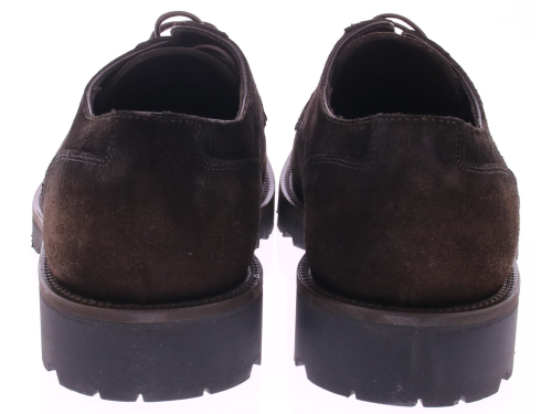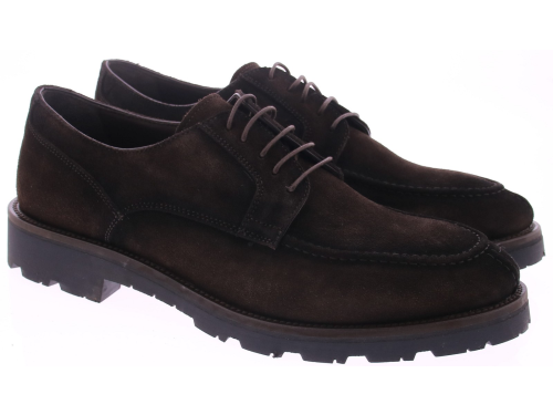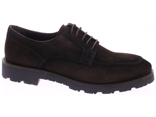 Heren veterschoen met spiegel en franse neusnaad van het italiaanse merk Spagnoletto Napoli artikel 952. Deze schoenen zijn gemaakt in bruin suède en hebben een leren voering op een sportieve rubber zool van Vibram met anti slip eilandjes voor op natte ondergrond.