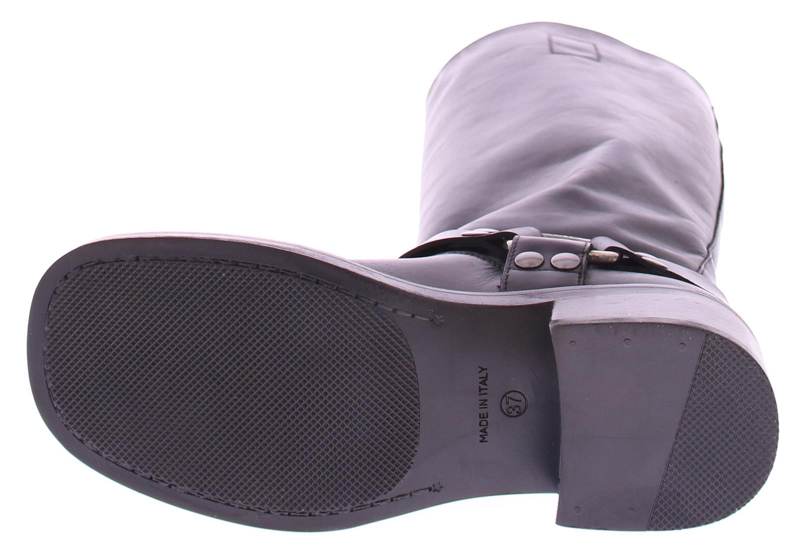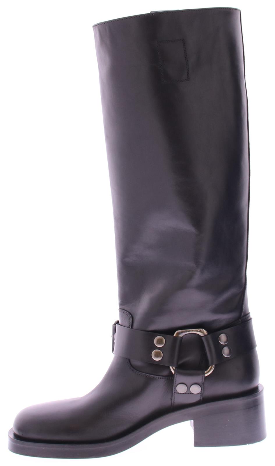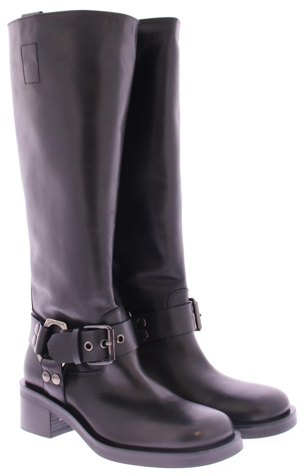 Zwart leren hoge biker boots voor dames van Strategia. Deze stoere laarzen met ronde neus en rechte schacht zijn een musthave deze winter. De zool is van rubber en de hak heeft een hoogte van 2 cm. Combineer deze bikerboots met een leren jasje en een jeans voor een edgy outfit.