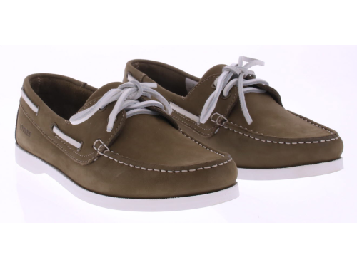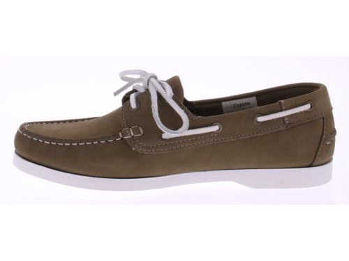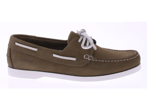 Heren bootschoen van Cypres uitgevoerd in taupe nubuck. De schoen is ongevoerd en heeft een rubber bootschoen zool.
