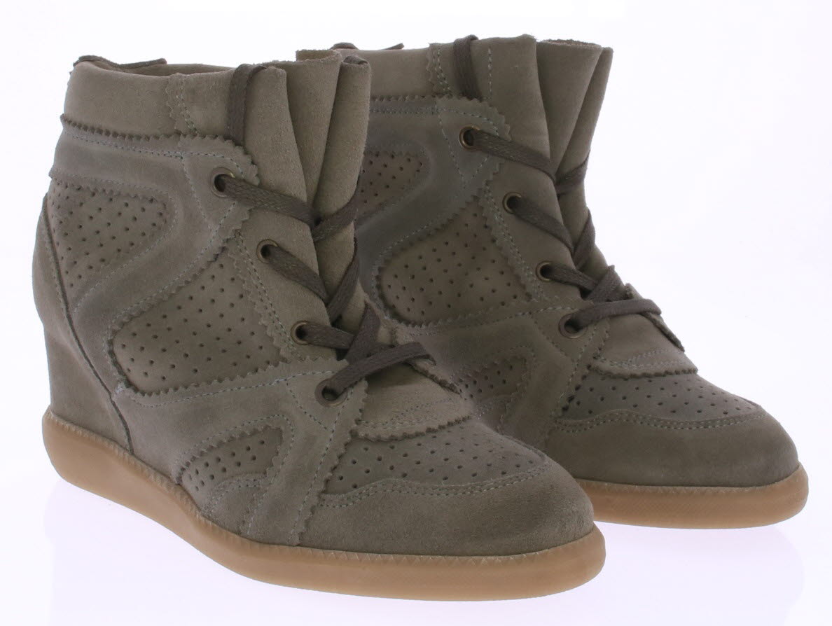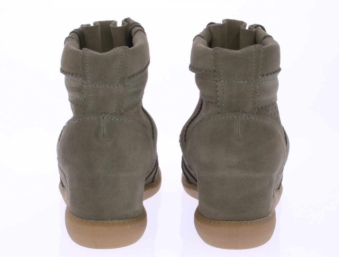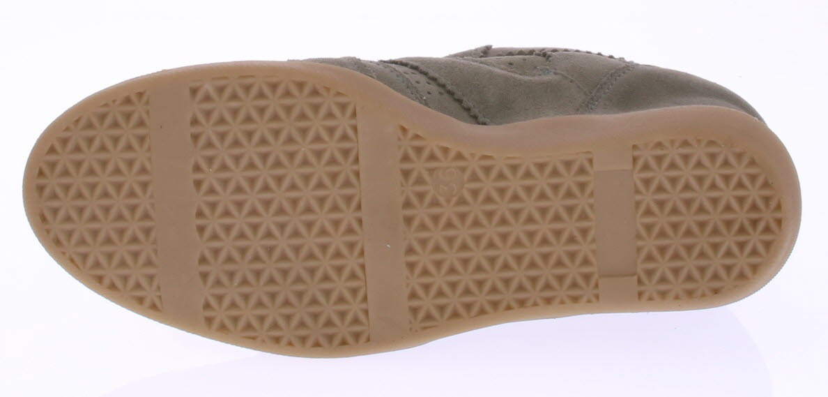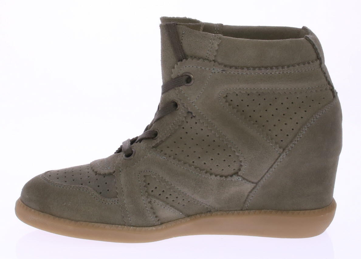 Taupe suede dames sneaker van DEABUSED. De sneaker heeft een trendy maar comfortabele ingebouwde sleehak.