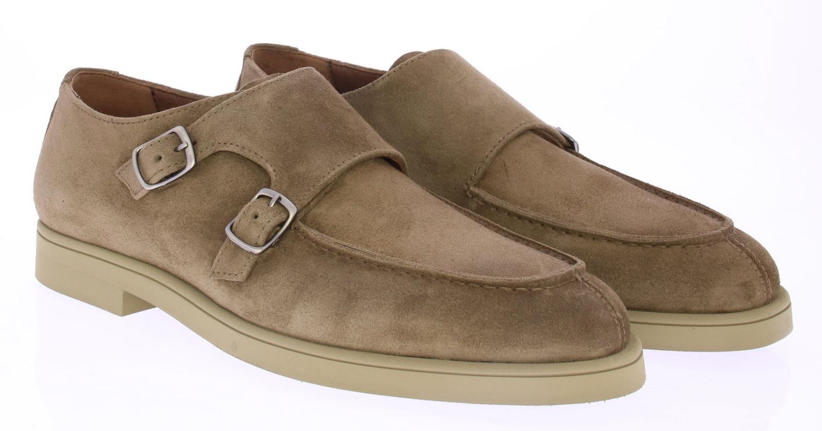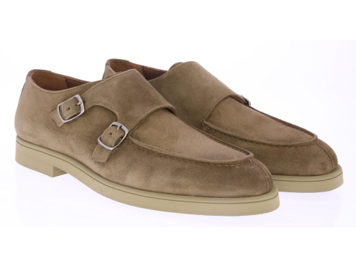 Taupe suede heren dubbele gesp schoen van Greve. Uitgevoerd op een licht gewicht zool met leren voering. De binnenzool is uitneembaar.