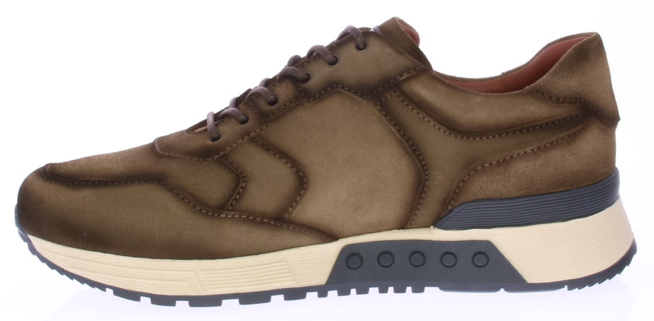 Taupe suede heren sneaker van Greve. Uitgevoerd in een K-leest. Deze extra brede leest heeft een comfortabel uitneembaar voetbed.