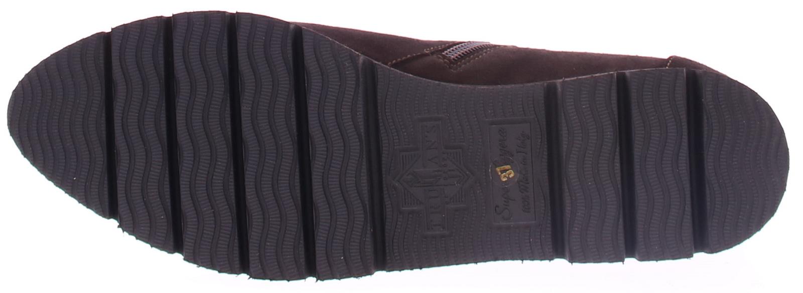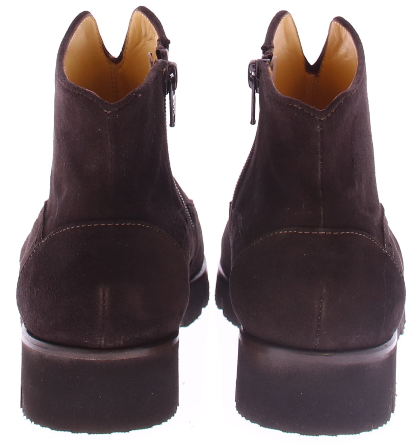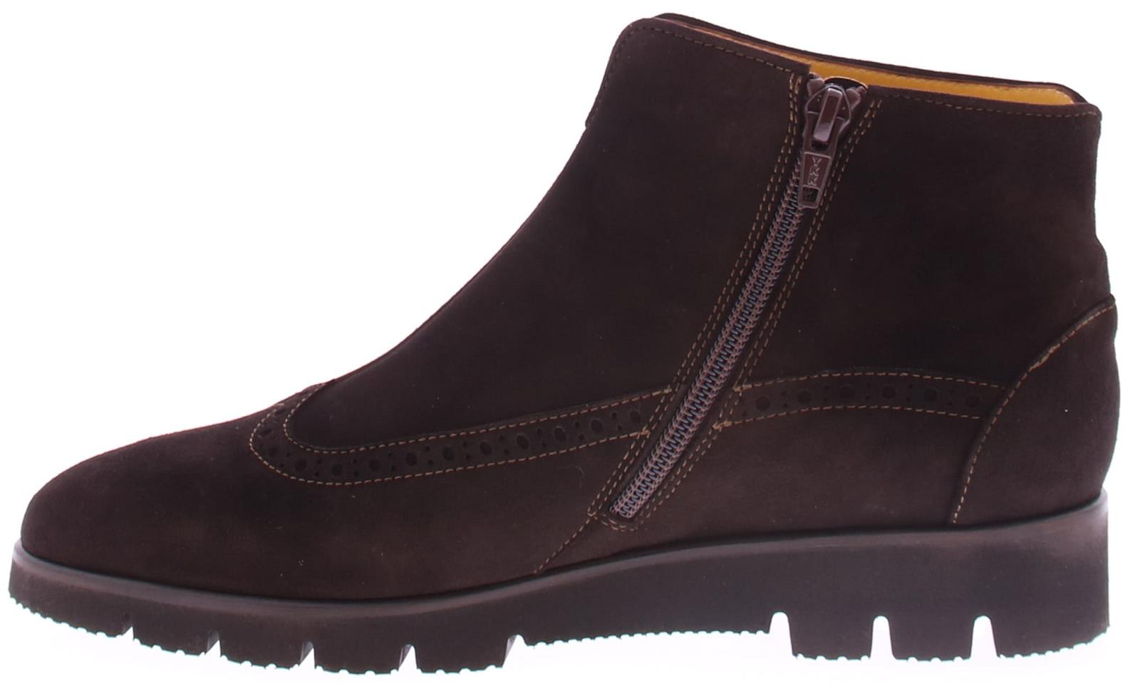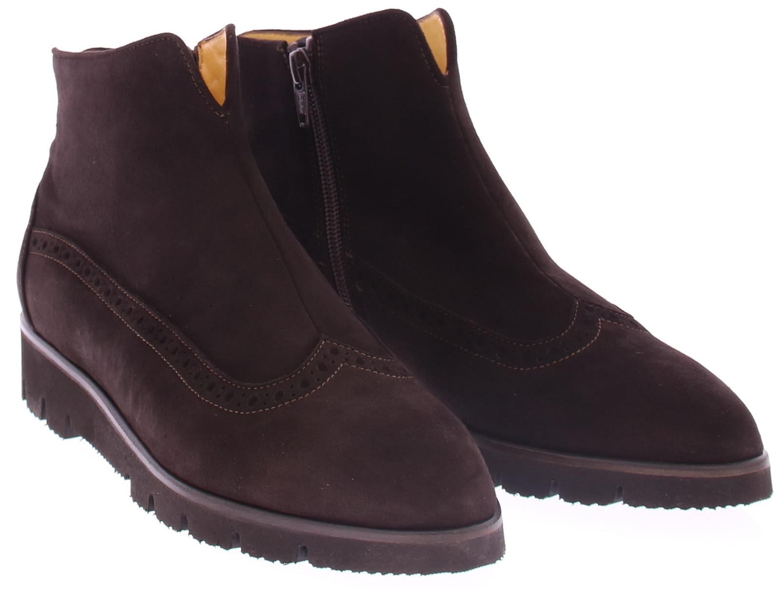 Donkerbruin suede dames korte laars van Truman's. Deze laars heeft een gestikte belijning over de wreef, en sluit met een rits. De iets grovere zool is van rubber.