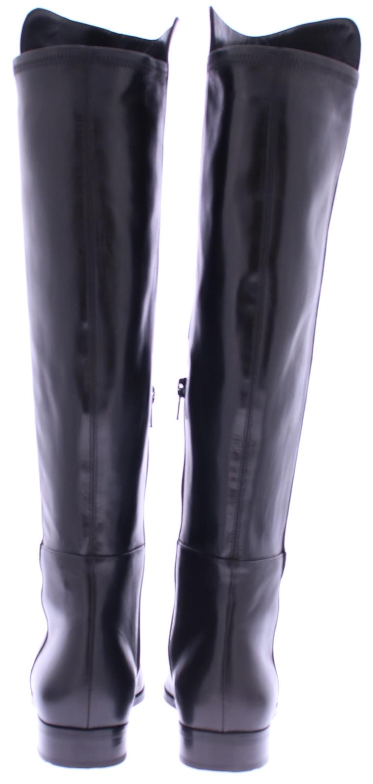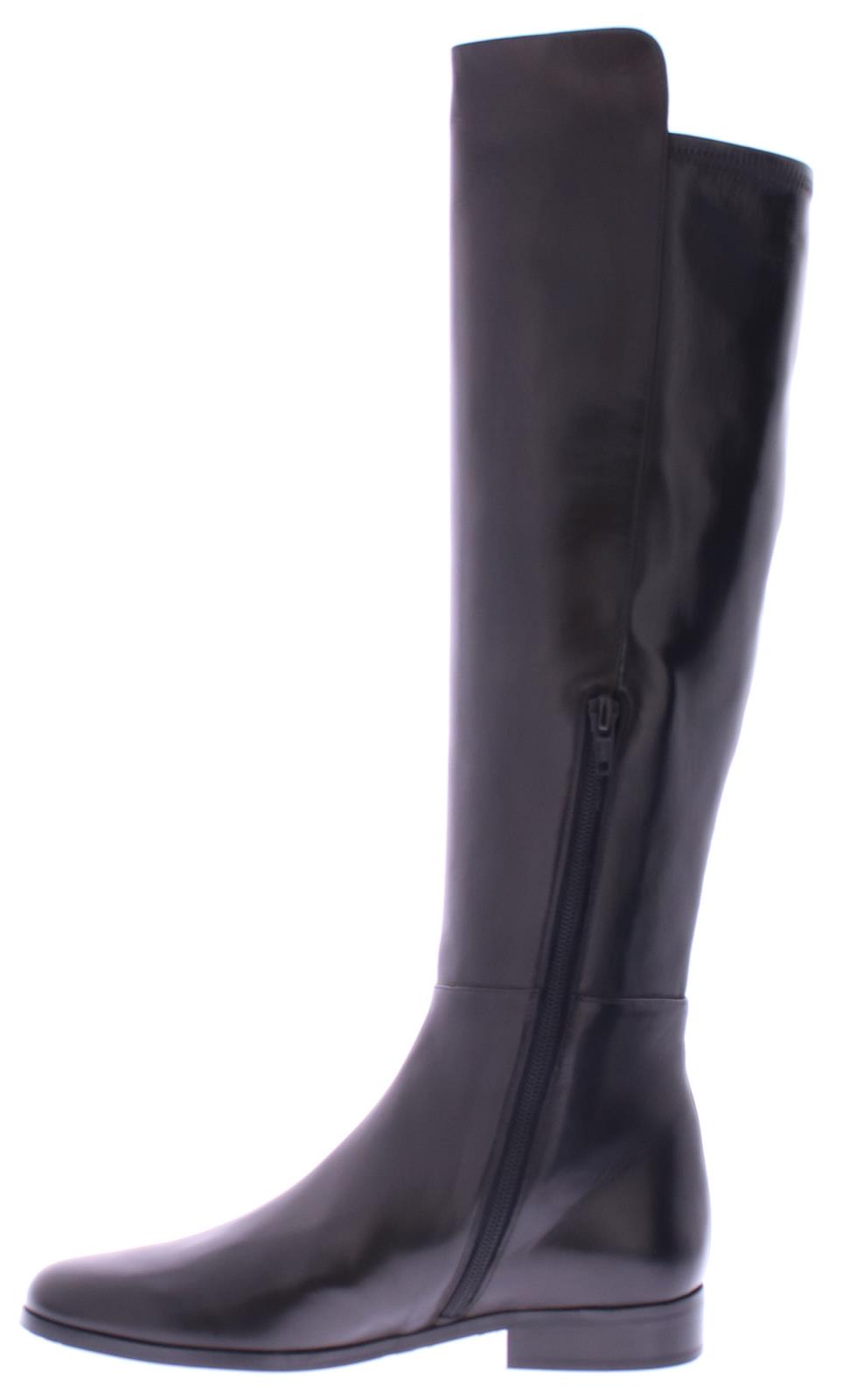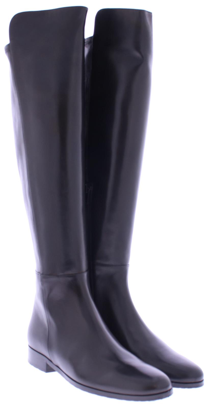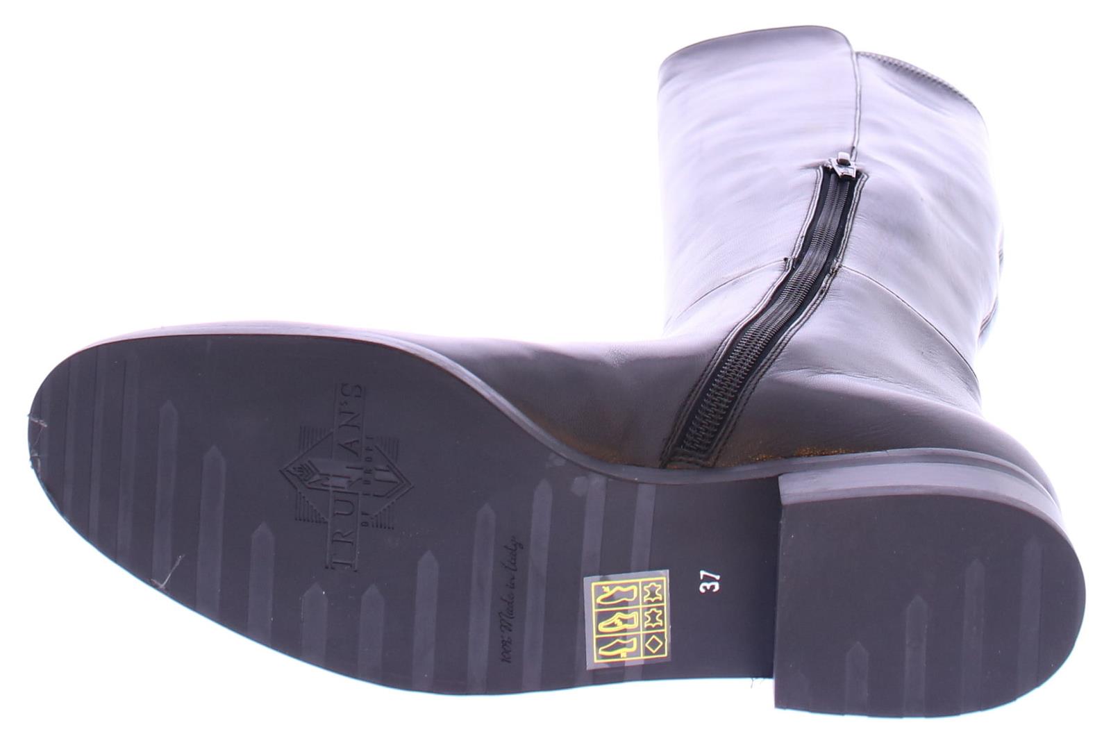Zwart leren dames hoge laarzen van Truman's. De voorkant van de schacht is van glad leer en de achterkant van soepele strech stof wat mooi aansluit om het been. De hak is ongeveer 2cm hoog en de zool is rubber.