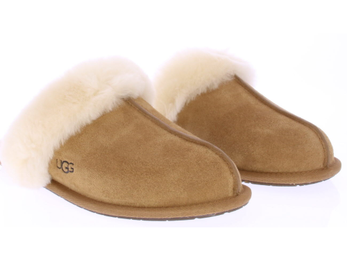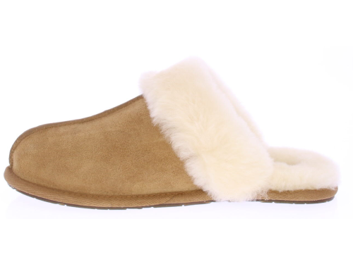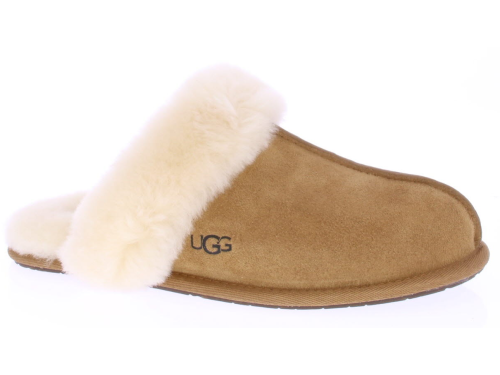 Middenbruin suede dames pantoffel van Ugg. De artikel naam van deze pantoffel is 'Scuffette II'. Uitgevoerd met een heerlijke zachte schapenvacht voering en dunne rubberen zool. Schapenvacht heeft de eigenschap dat het de eigen lichaamstemperatuur aanneemt.