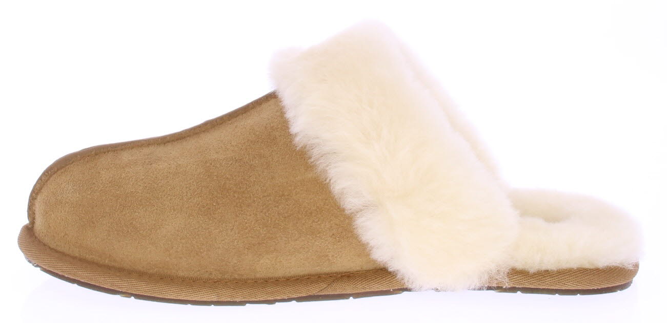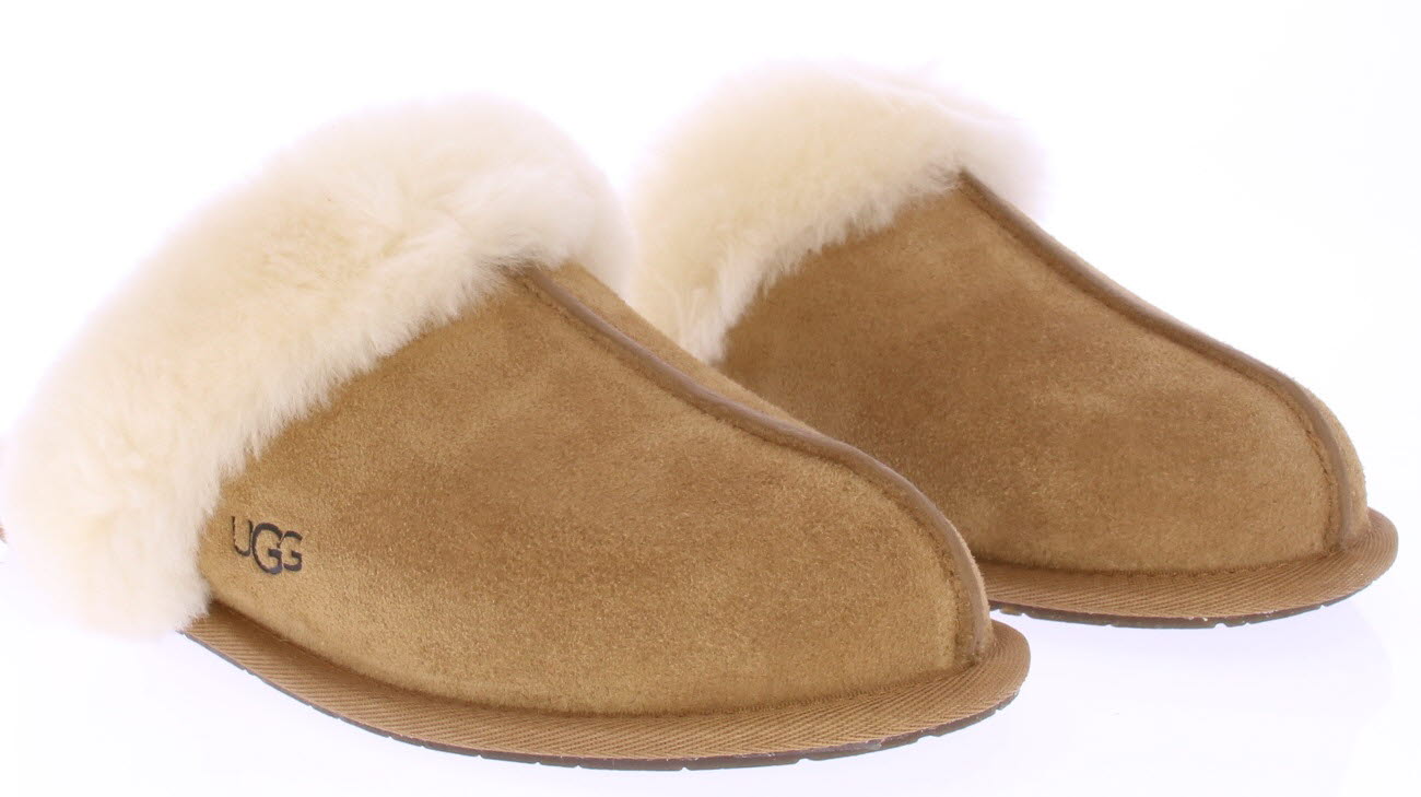 Middenbruin suede dames pantoffel van Ugg. De artikel naam van deze pantoffel is 'Scuffette II'. Uitgevoerd met een heerlijke zachte schapenvacht voering en dunne rubberen zool. Schapenvacht heeft de eigenschap dat het de eigen lichaamstemperatuur aanneemt.