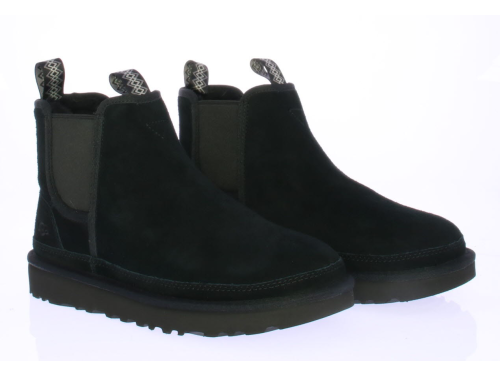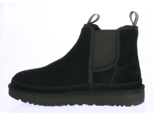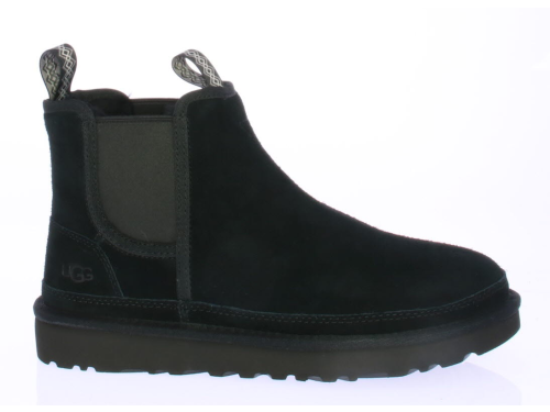Zwarte suede heren Chelseaboot van UGG. De artikel naam van deze schoen is 'Neumel Chelsea Black'. Deze schoen heeft een voering van schapenvacht en is daarmee perfect voor winters weer. De schoen heeft twee treklussen aan de schacht voor een gemakkelijke instap.