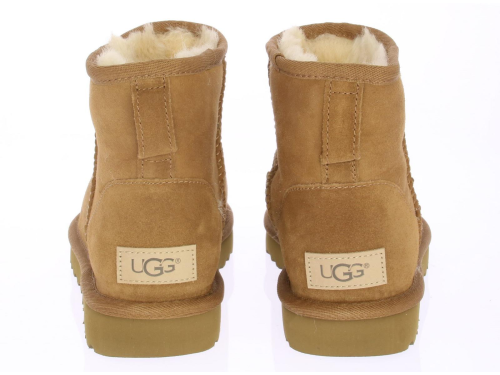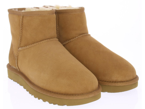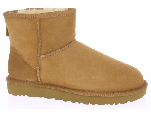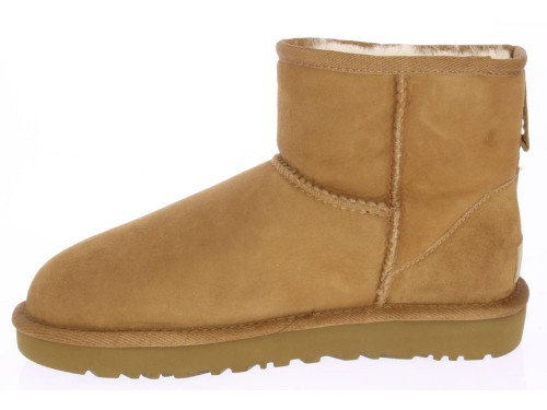 Middenbruinkleurige suede dames laars van UGG. De laars is uitgevoerd met de nieuwe rubberen lichtgewicht zool en behandeld zodat de laars waterafstotend is. De laars is geheel gevoerd met schapenvacht wat heerlijk warm blijft aan de voet. Dit model is de classic mini II.