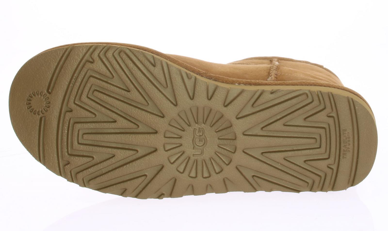Middenbruinkleurige suede dames laars van UGG. De laars is uitgevoerd met de nieuwe rubberen lichtgewicht zool en behandeld zodat de laars waterafstotend is. De laars is geheel gevoerd met schapenvacht wat heerlijk warm blijft aan de voet. Dit model is de classic mini II.