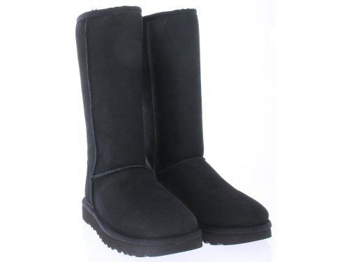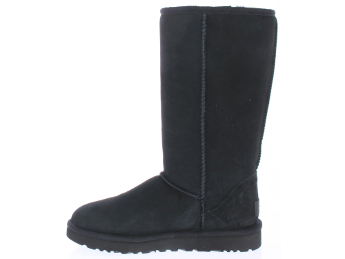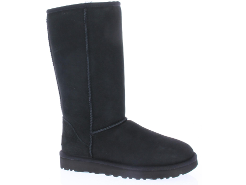Zwarte suede lange dames laars van UGG. De Classic Tall II is gemaakt van dubbelzijdige sheepskin en suede, heeft een treklus aan de achterkant, decoratieve stootnaden, een sheepskin inlegzool en nylon stiknaden. Dit klassieke model van Ugg is gevoerd met vacht en daarmee lekker warm voor winters weer.