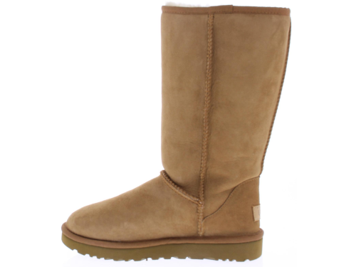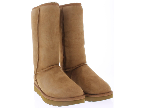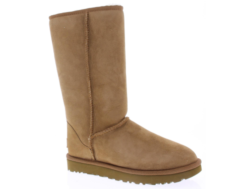 Middenbruin suede lange dames laars van UGG.De Classic Tall is gemaakt van dubbelzijdige sheepskin en suede, heeft een treklus aan de achterkant, decoratieve stootnaden, een sheepskin inlegzool en nylon stiknaden. Dit klassieke model van Ugg is gevoerd met vacht en daarmee lekker warm voor winters weer.