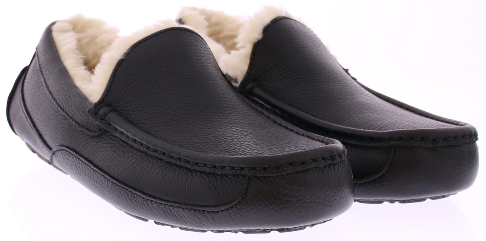 UGG Ascot Black Leather Zwarte pantoffels voor heren