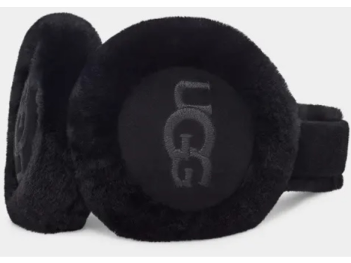 Zwart suede luxe oorwarmers voor dames van UGG. Met een heerlijke schapenvacht voering biedt deze oorwarmer je een eerste klas bescherming voor de koudste wintermaanden. Op het oorgedeelte zit het Ugg logo geborduurd.