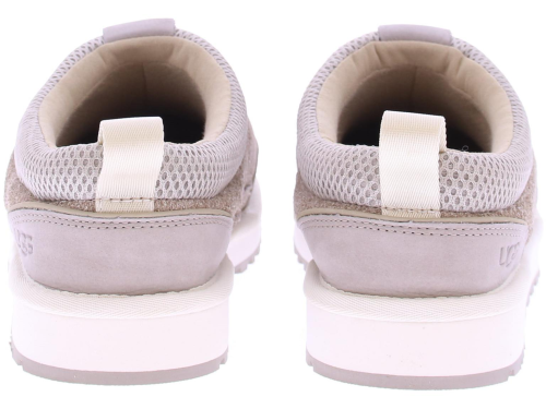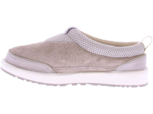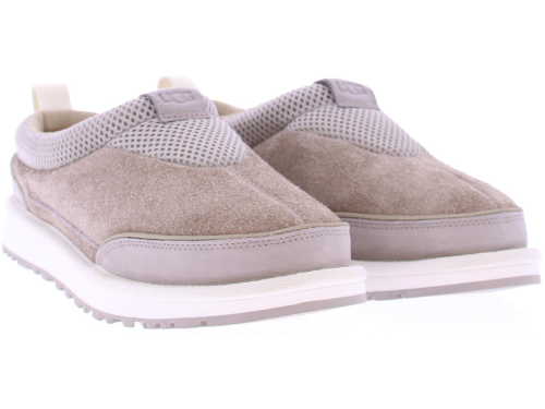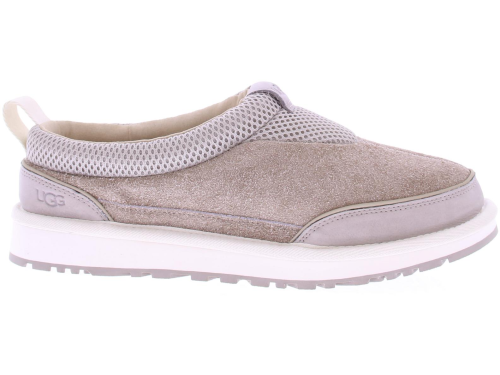 Lichte taupe suede met leren heren muil van Ugg. De zachte voering maakt het extra comfortabel. Op de wreef en de treklus zit het ugg logo verwerkt. En de zool is van rubber.