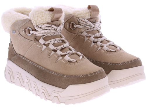 Zandkleurig suede dames enkelboot van Ugg. De TerreTrail Cozy Lace is comfortabel en functioneel. De laars is ontworpen met waterdicht suède en een kraag van krullend imitatiefleece van gerecyclede vezels, voor een tijdloze winterstijl. Hul jezelf in warmte met de zachte voering van imitatiefleece en onze behaaglijke UGGplush-inlegzool. De TerreTrail Cozy Lace is opgewassen tegen het winterweer met een Spider Rubber®-buitenzool voor verbeterde grip