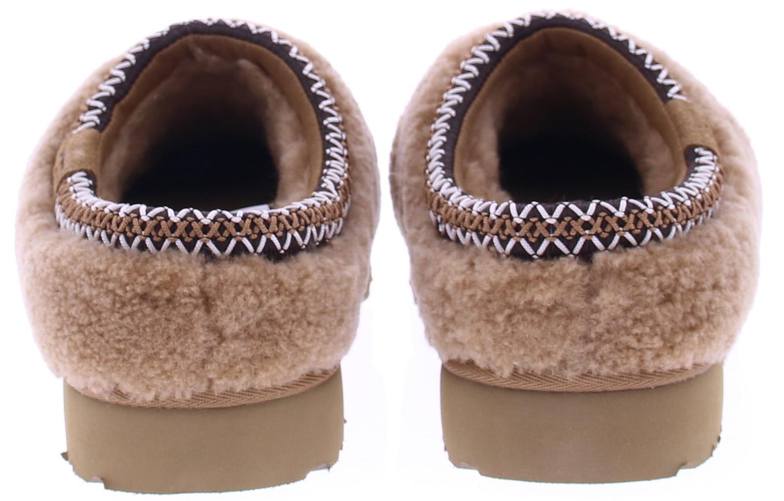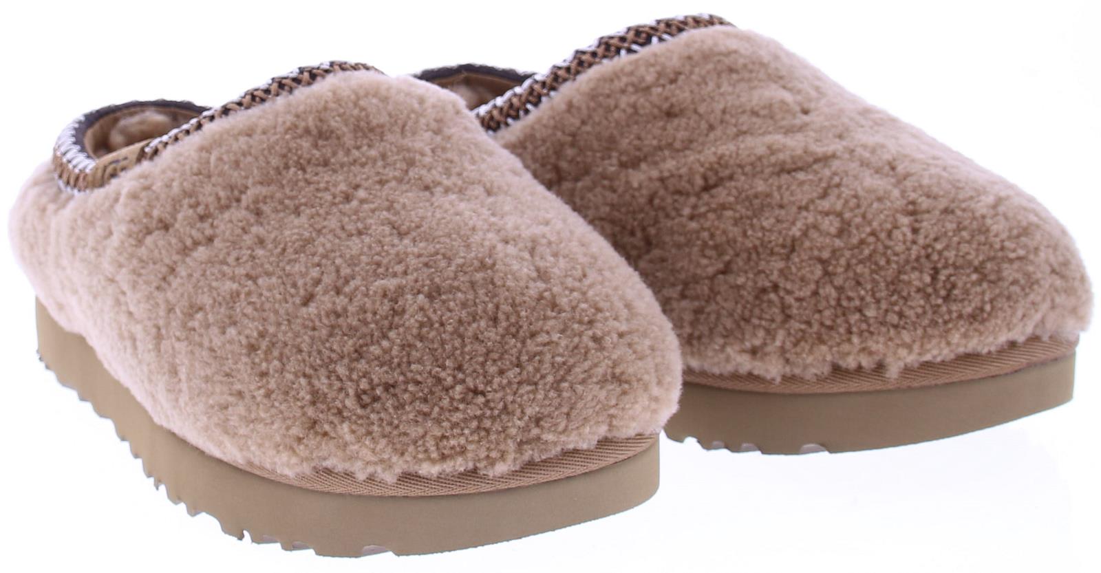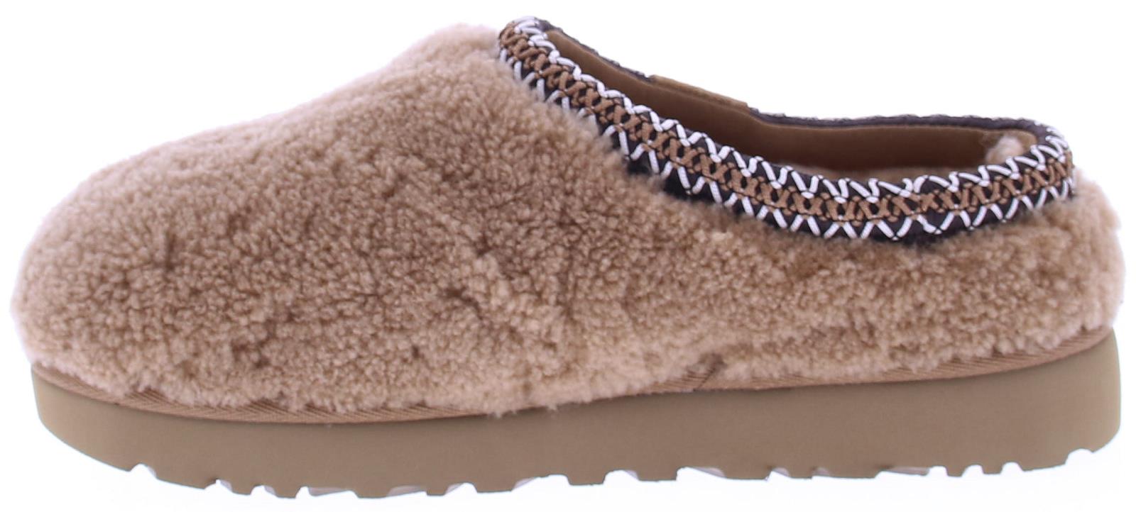Middenbruine teddystof muil van Ugg. Deze Tassman Ugg Curly is gemaakt van hele zachte teddystof met vacht voering en een plateauzool. Bovenop de voet loopt een geborduurde rand. Leuke trendy muil in zachte materialen.