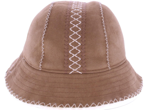 Middenbruin dames visserhoedje van Ugg. Deze heerlijk warme vissershoed is gevoerd met echt schapenvacht. Is met de de hand geborduurd en heeft een leren Ugg plaatje aan de zijkant.|
