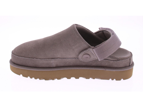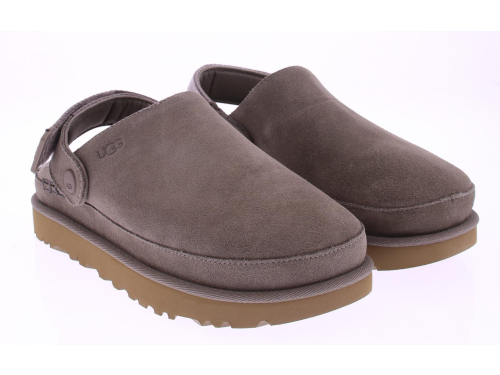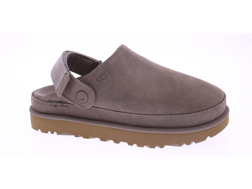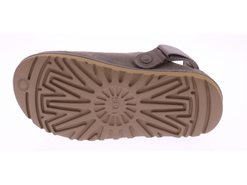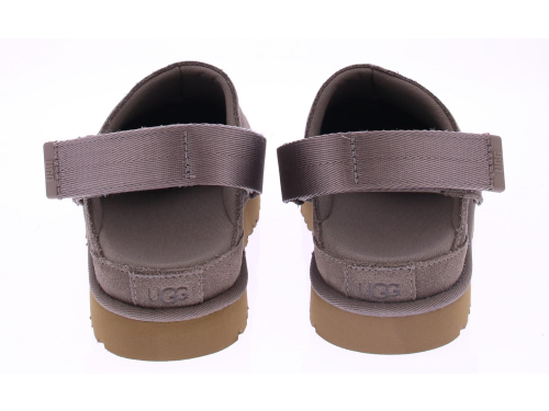 Grijs/taupe suede dames muil van Ugg. Deze muil is uitgevoerd in grijs/taupe suede aan de buitenkant, de voering is van zachte stof, en heeft een superzacht voetbed. De band om de hiel met stoffen logo kan ook naar voren gedragen worden. De zool is van rubber.