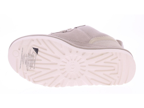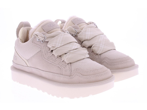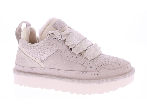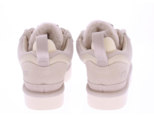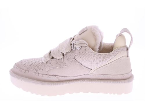Off-white suede dames sneaker/ boot van Ugg. De Lowmel chestnut is een lage sneaker met stoere brede veter en is vacht gevoerd. Het grootste gedeelte is suede en voorop zit mesh. Op de zijkant van de hiel zit het Ugg logo gedrukt.