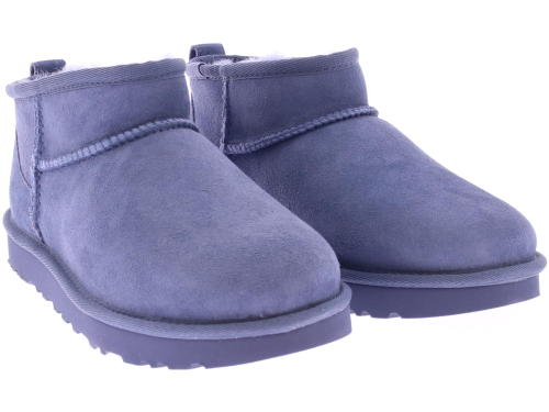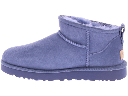 Jeans blauwe suede dames classic ultra mini van Ugg. Dit model de Ugg classic ultra mini is aan de buitenkant vervaardigd uit suede en voorbehandeld met vlek- en waterafstotende middelen. De voering is gemaakt van het welbekende schaapswol waardoor de voeten altijd verwarmd zijn. De treklus op de achterbies helpt het aan- en uittrekken te versoepelen.