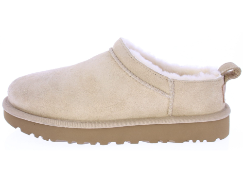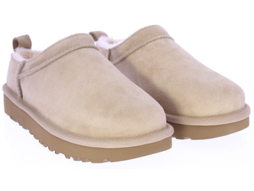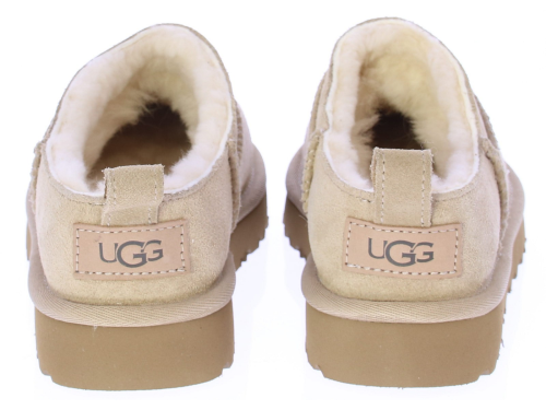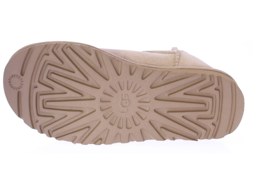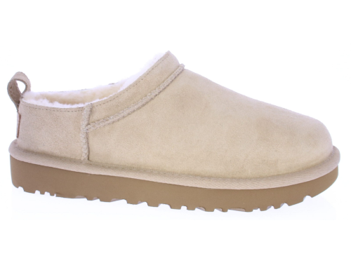 Zandkleurig suéde classic micro voor dames van Ugg. Deze Classic Micro is een nieuwe interpretatie van onze populaire Classic-laars met een nieuw design met laag profiel (en hoogwaardig comfort). Het bovenstuk is gemaakt van echt suède en gevoerd met superzachte sheepskin die op natuurlijke wijze de temperatuur reguleert, zodat je ze met of zonder sokken kunt dragen. De lichtgewicht buitenzool van EVA op basis van suikerriet biedt moeiteloze ondersteuning en geeft je dat comfortabele pantoffelgevoel bij elke buitenactiviteit.