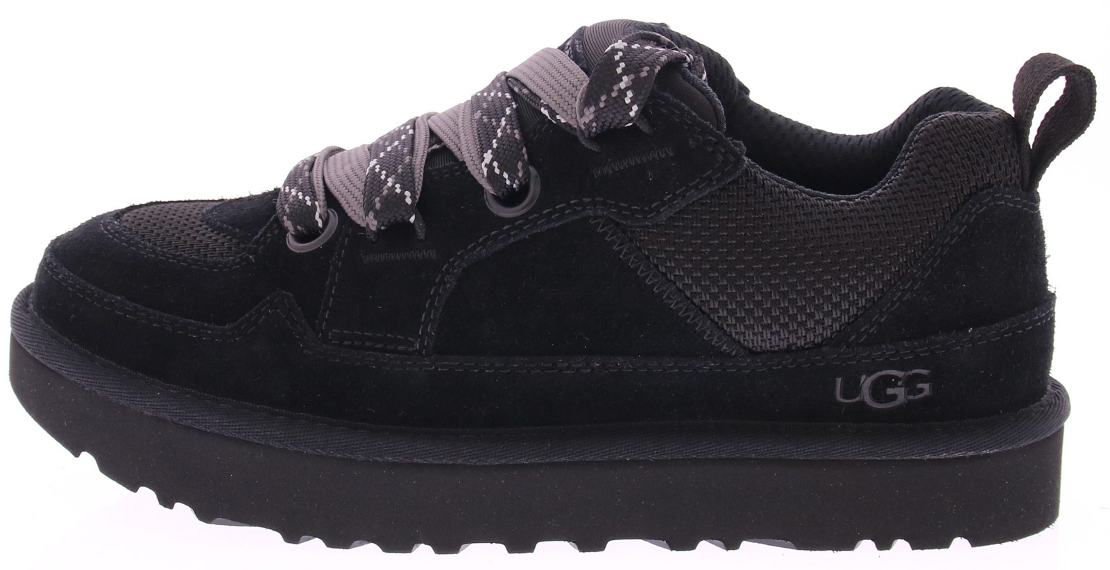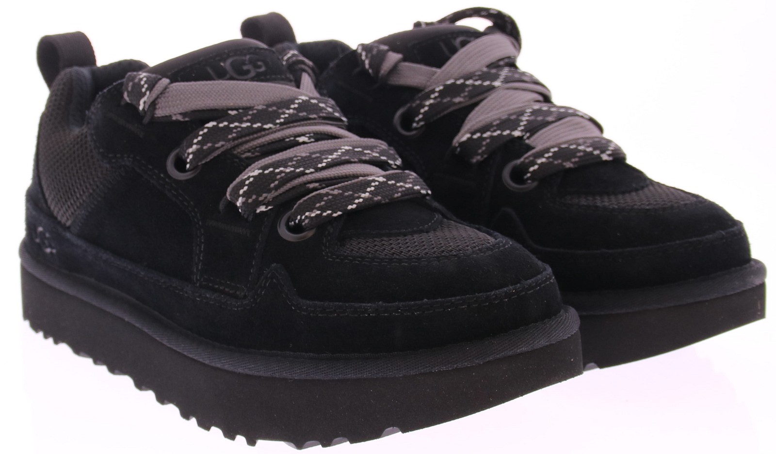 Zwart suéde heren snaker van Ugg. Deze lage sneaker de Lo Lowmel black heeft een bovenwerk van suède met mesh op de neus, wat zorgt voor ventilatie en een eigentijdse look. De brede veters en stevige rubberen zool geven de schoen een robuust karakter. Deze comfortabele en veelzijdige Ugg sneaker is ideaal voor dagelijks gebruik en laat zich moeiteloos combineren met zowel casual als urban outfits. Het subtiele Ugg-logo op de hiel maakt het design compleet.