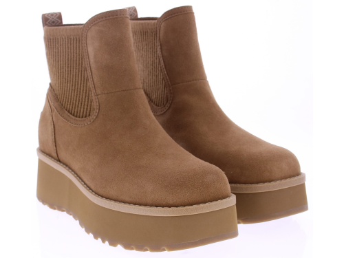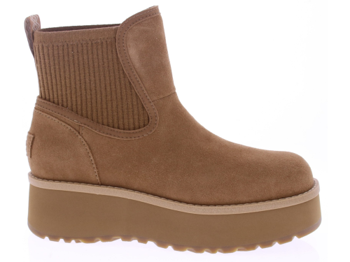 Middenbruin suède dames korte laars van Ugg. Deze chestnut Cityfunc chelsea van Ugg is veelzijdig, capabel en heel comfortabel. Hij is voorzien van een opvallende plateauzool van 3,8 cm. De laars is gemaakt van waterafstotend suède om bescherming te bieden tegen onverwachte buien en beschikt over een ribgebreid bovenstuk voor een behaaglijke, gestructureerde afwerking. Dankzij de veerkrachtige middenzool van EVA op basis van suikerriet en de lichtgewicht rubberen buitenzool loop je er altijd funky bij, waar de dag je ook brengt.