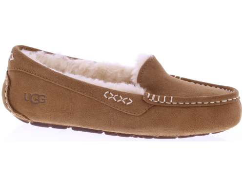 Middenbruin suède dames pantoffel van Ugg. Deze pantoffels de Ansley black zijn speciaal ontworpen voor dames en zijn gemaakt van hoogwaardig suède. De binnenkant is gevoerd met zacht wol, waardoor je voeten heerlijk warm blijven, zelfs op koude dagen. De rubberen zool zorgt voor een goede grip en duurzaamheid. Met de ronde neus en het ontbreken van een sluiting hebben deze pantoffels een casual en moeiteloze uitstraling. De kleur van deze Ansley pantoffels is zwart, wat perfect past bij elke outfit. Het merk UGG staat bekend om zijn kwaliteit en comfort, en deze pantoffels zijn daar geen uitzondering op.