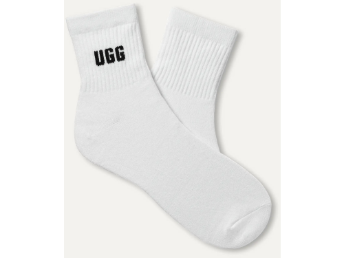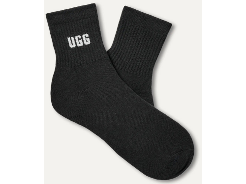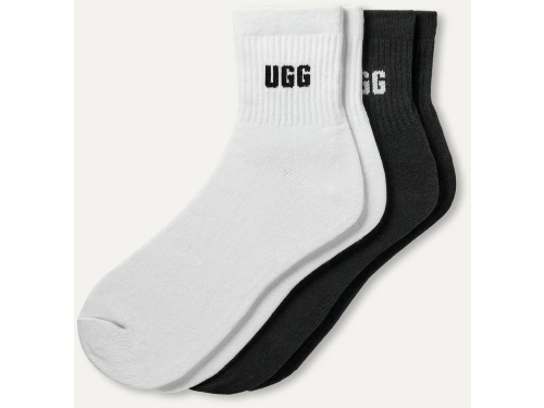 Zwart met witte sokken voor dames van Ugg. Deze quarter sokken combineren comfort met een verantwoorde keuze. Gemaakt van zachte katoen met gerecycled polyester, bieden ze een flexibele pasvorm dankzij de toevoeging van elastaan en rubber. De sokken vallen net boven de enkel en zijn afgewerkt met een subtiel logo voor een sportieve look. Ideaal voor dagelijks gebruik.