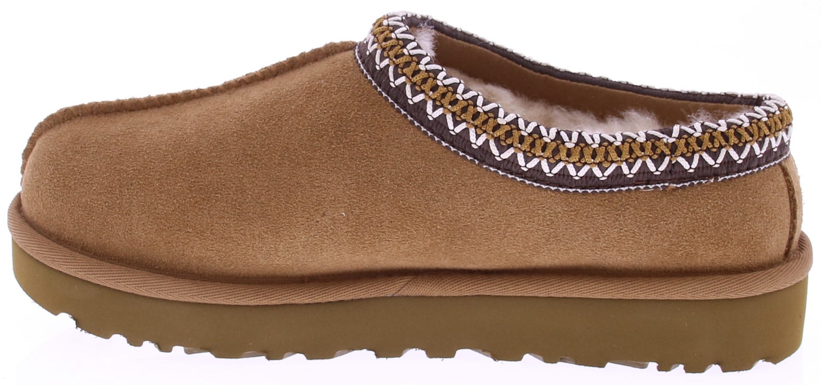 Chestnut suède dames pantoffel van Ugg. De iconische Tasman heeft een nieuwe aanwinst: de Tasman II RYK. Deze evolutie beschikt over hetzelfde lage instapprofiel als de originele Tasman en is voorzien van onze kenmerkende UGGbraid™ op de kraag , een heerlijk warme voering van sheepskin en zachte EVA zool van suikerriet voor optimaal comfort. De Tasman is perfect voor binnen en buiten.