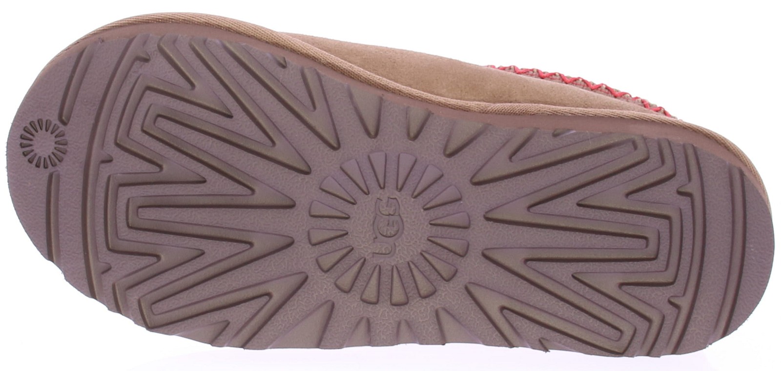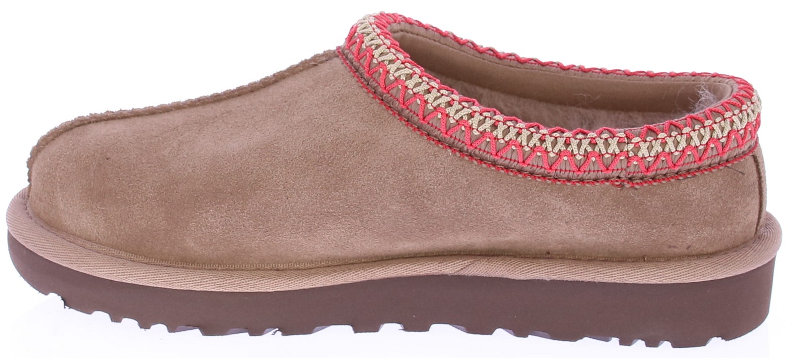Bruin suède dames pantoffel van Ugg. De iconische Tasman heeft een nieuwe aanwinst: de Tasman II RYK. Deze evolutie beschikt over hetzelfde lage instapprofiel als de originele Tasman en is voorzien van onze kenmerkende UGGbraid™ op de kraag in oranje met off-white, een heerlijk warme voering van sheepskin en zachte EVA zool van suikerriet voor optimaal comfort. De Tasman is perfect voor binnen en buiten.