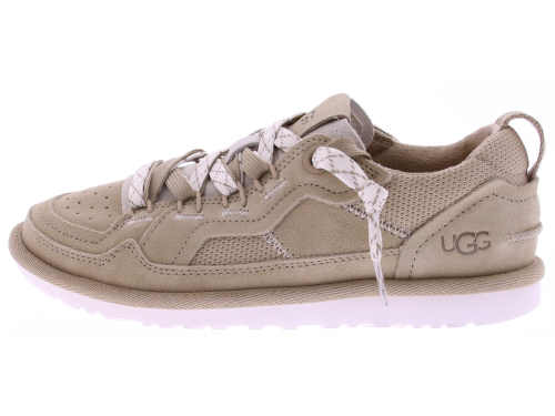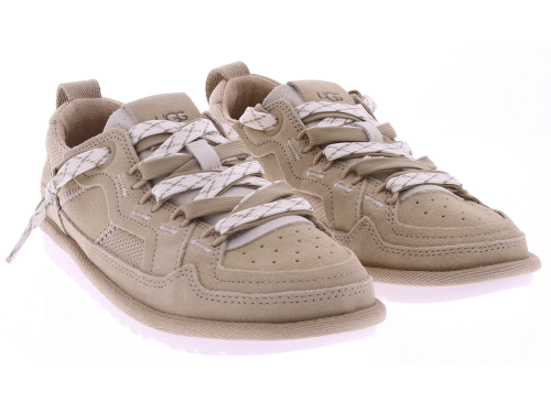 Zandkleurige suède dames sneakers van UGG model Minimel 1175301 MDSD. Deze sportieve sneakers heeft een streetwear-accent. De Minimel-sneaker biedt extra comfort in een nieuw, laag profiel. Hij beschikt over een bovenstuk van gemengd materiaal, gemaakt van suède en 100% gerecyclede vezels voor een exclusieve uitstraling. Bovendien biedt de ultralichte EVA-buitenzool van suikerriet de hele dag door optimaal comfort. Dankzij de tweekleurige platte veters en het dubbele vetersysteem kun je ze op allerlei manieren strikken en stylen, helemaal naar jouw smaak. Kijk ook eens bij onze andere UGG damesschoenen bij Klijsen.